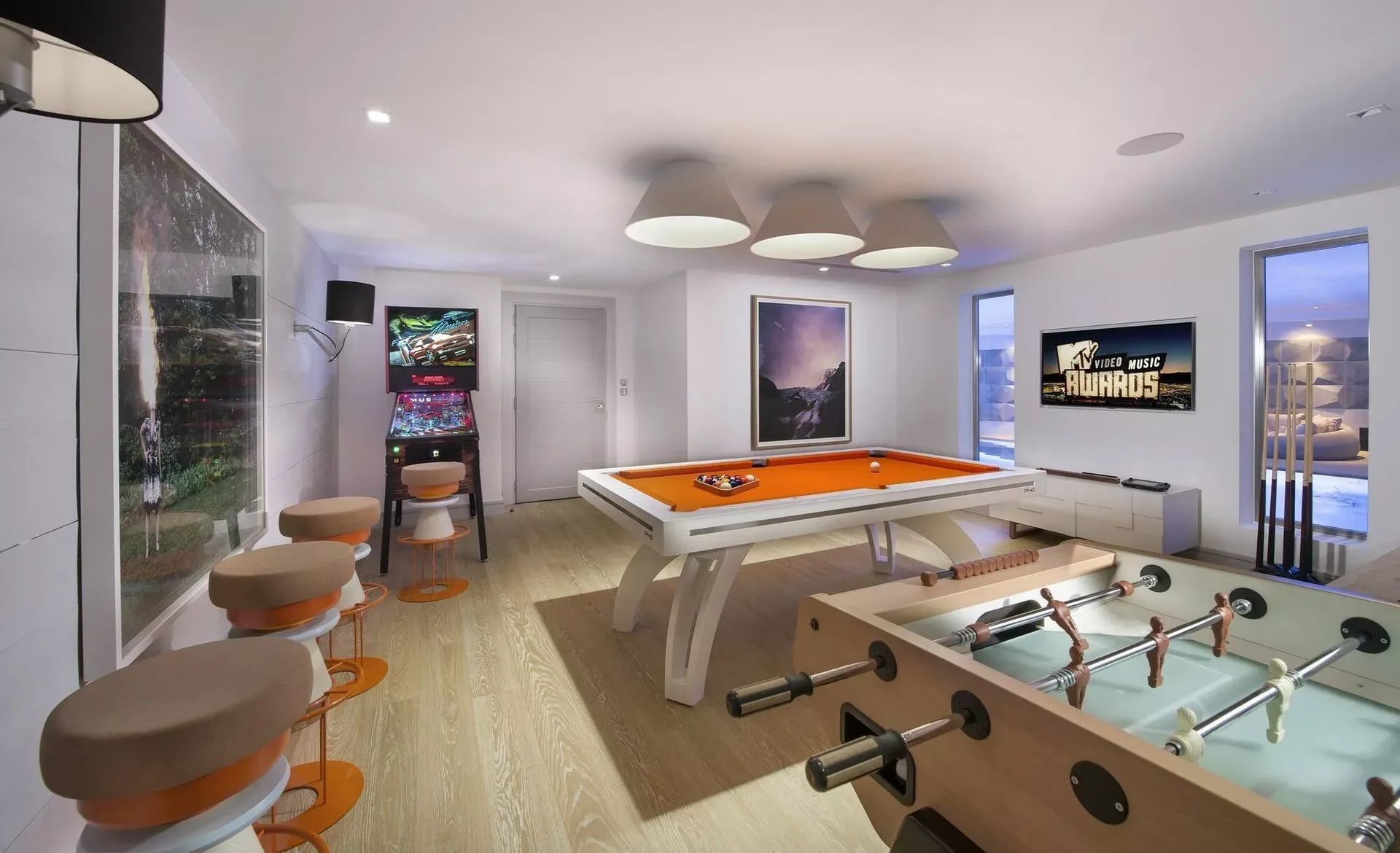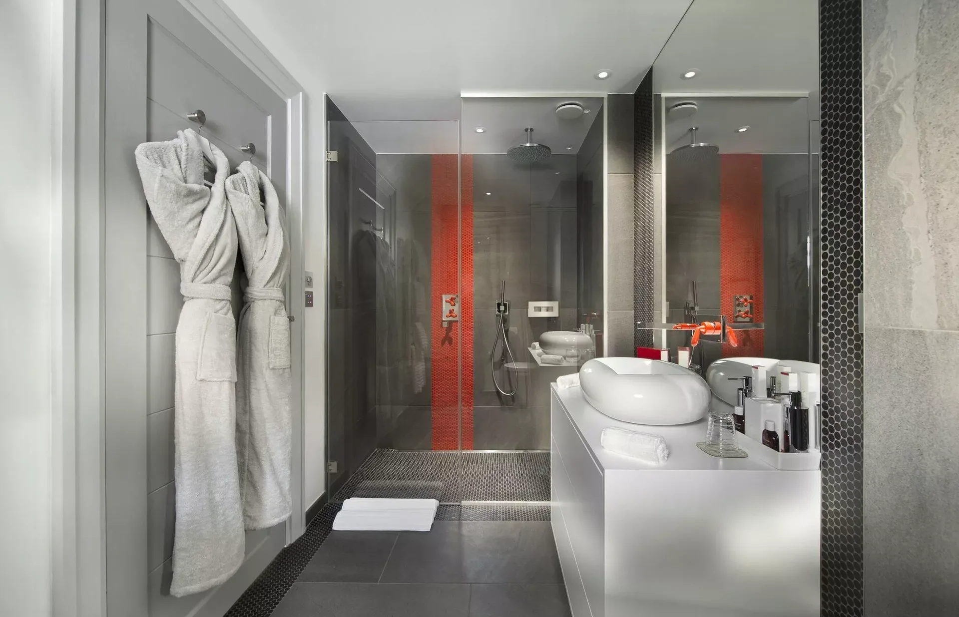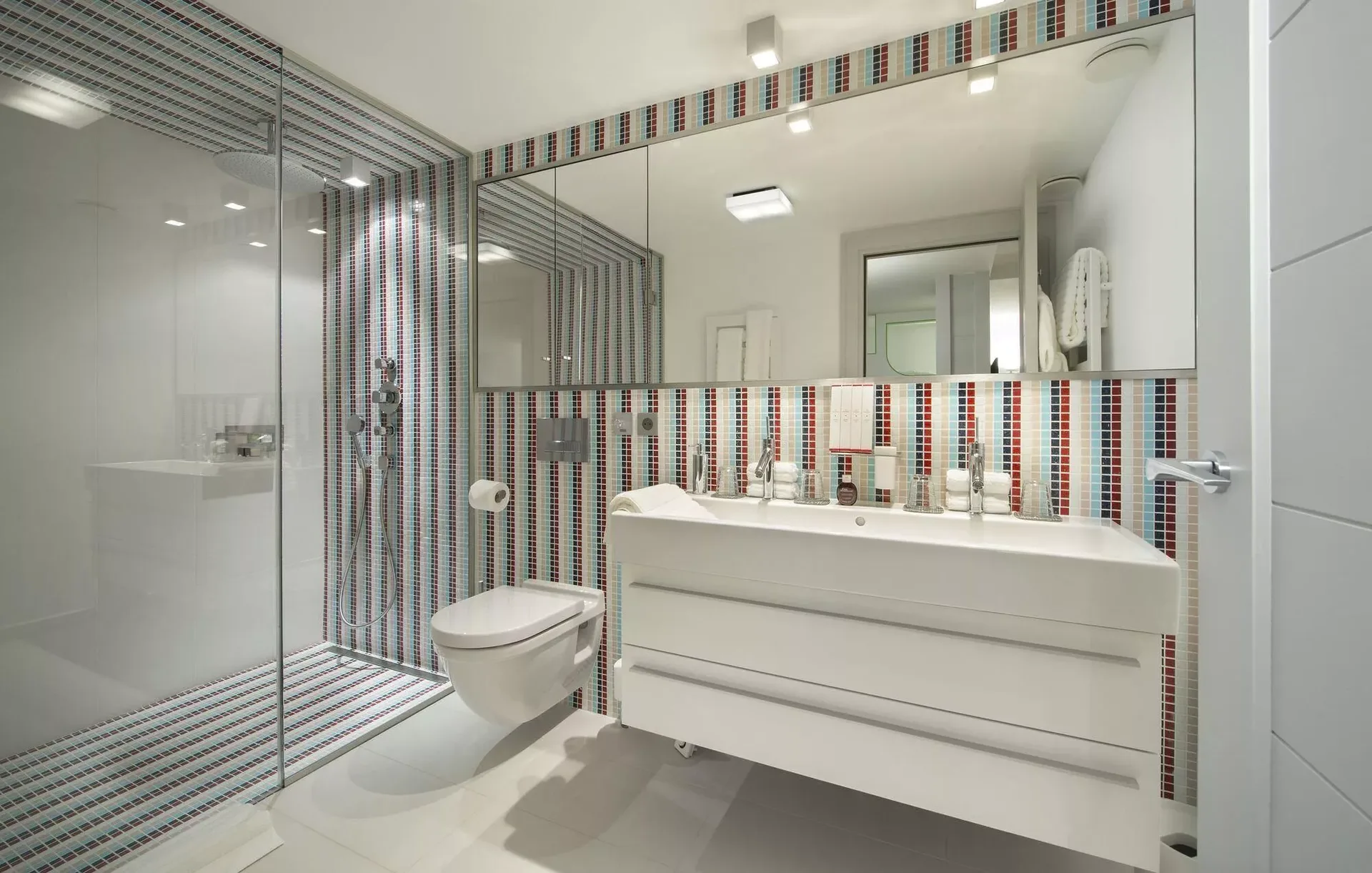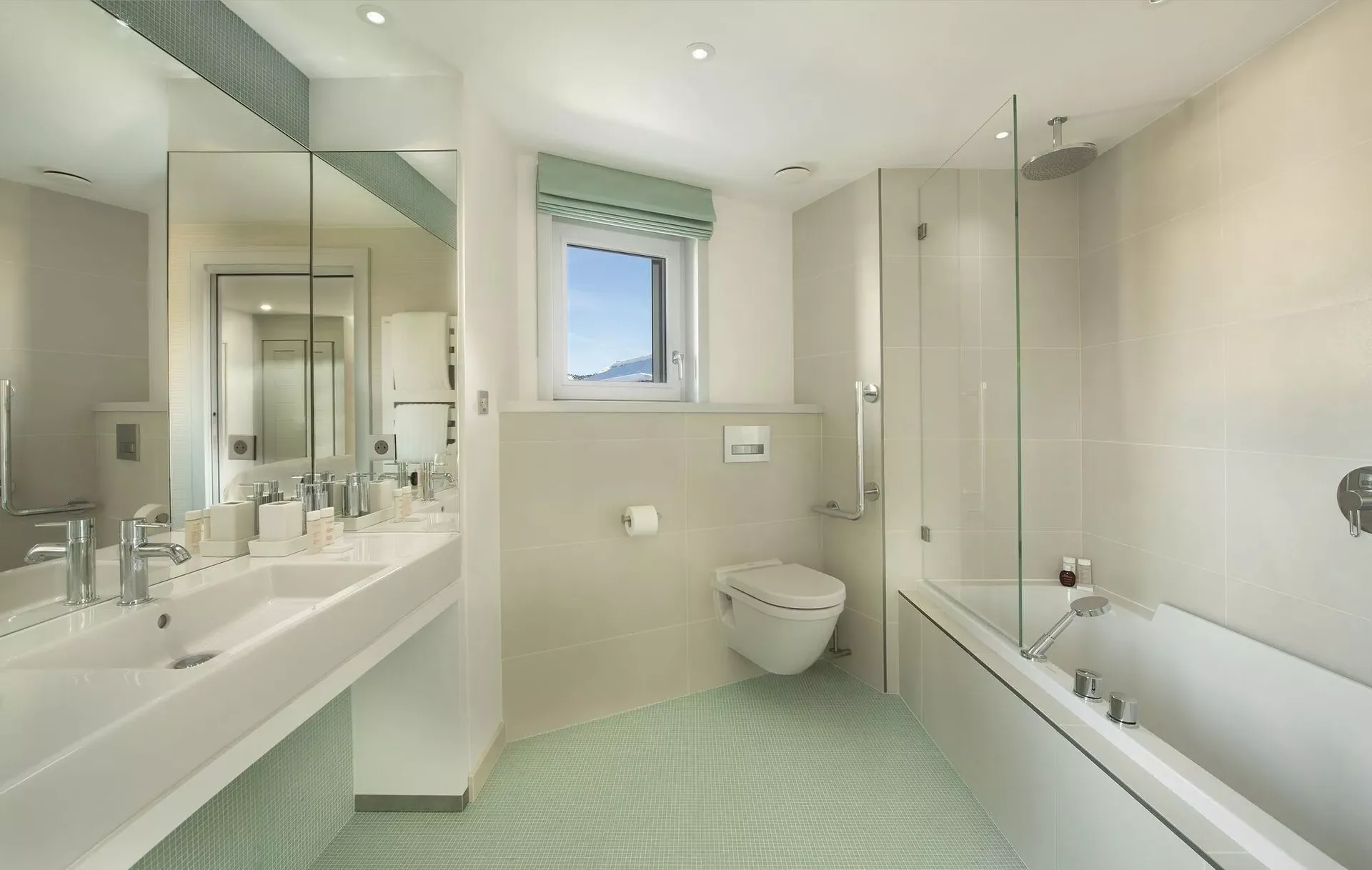 The chalet accommodates up to 14 guests across seven beautifully appointed bedrooms, including a dedicated children’s bedroom with four single beds. Each room features its own ensuite bathroom, TV, and elegant décor, enhanced by soft textures, warm lighting, and subtle touches of color that create a cozy and restful ambiance.